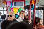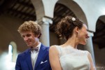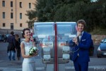 I ragazzi hanno dovuto organizzare tutto dall’estero, dove vivono, ma non per questo hanno rinunciato ad organizzare il matrimonio secondo il loro gusto personale, vivace, e ricco di sorprese. Prima fra tutte la decisione di Pietro di prepararsi in un appartamento nel centro di Roma e di raggiungere la chiesa in autobus, insieme ai suoi 5 fratelli, un cane e a un centinaio di palloncini colorati. Durante la cerimonia, presso la bellissima chiesa di San Giorgio al Velabro in Roma un altra sorpresa: un coro composto da amici intimi degli sposi intona Halleluya di Jeff Buckley, facendo commuovere tutti gli invitati, fotografi compresi. Finita la cerimonia sposi e invitati, in posa per la foto di gruppo, fanno volare nei cieli romani i palloncini colorati. La passeggiata è veloce, i ragazzi sono timidi, e non amano le foto in posa, oltretutto è tardi e possiamo sfruttare pochi minuti ancora di luce naturale. Alla festa,nella splendida cornice dei Giardini dell’Insugherata ci divertiamo anche noi, amici da ogni parte del mondo, sono uniti a festeggiare la nascita di una nuova famiglia. Tanti sorrisi e parole in tutte le lingue dedicate agli sposi. Insomma un gran successo. Grazie ragazzi, è stato uno piacere far parte di un giorno per voi così importante