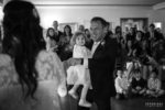 Ricordo piacevolmente il giorno che ci siamo incontrati a studio, da subito è scattato un bellissimo feeling, coppia innamoratissima ed entusiasta, totalmente persa di amore per la loro splendida figlia, vera protagonista insieme agli sposi, di questo matrimonio intimo e famigliare fatto di emozioni vere e partecipazione, una bellissima storia da raccontare. La documentazione è iniziata a casa di Stefania per riprendere i preparativi alla presenza dei parenti più stretti. Il servizio è continuato con la cerimonia religiosa alla Basilica di San Marco, suggestiva perché ricca di emozioni così come molto bello (e inaspettato per la bimba) il momento della liberazione delle colombe subito dopo il lancio del riso. Alla fine della cerimonia, prima di raggiungere gli invitati al ricevimento, con gli sposi abbiamo effettuato una breve sessione fotografica di coppia sfruttando la vicina terrazza del Campidoglio, raggiunta a piedi.