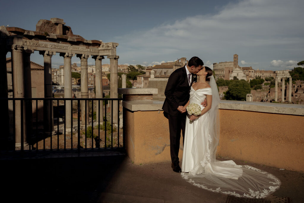 E poi la luce di Roma di dice sia la più romantica al mondo: calda, morbida e avvolgente. Al tramonto, la città si tinge di sfumature dorate perfette per raccontare le emozioni del vostro matrimonio.